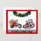 A colourful Motorcycle themed post card with Mr. and Mrs Clause donning a bike and a Santa on a chopper set to roll! Complete with a beautiful garland wreath, this postcard will brighten and make this a cheerful holiday season this year! Don,t leave anyone out! Order today and say Merry Christmas to all the motorcycle enthusiasts of your life! Fast,prompt delivery on all orders!