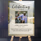 The perfect memorial poster for greeting family and friends as they enter your loved one's celebration of life. Especially for a motorcyclist or biker, the design features a square personal photo, 5 lines of custom text and a background photo of a biker on a road. You can easily change this out with your own photo background. Classic yet unique - this template is so easy to personalise and will make a wonderful memorial keepsake too.