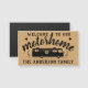 Add your family name to this chic rustic farmhouse fridge magnet with a faux burlap background and black silhouettes, perfect for RVers to add a small, personalised touch to their decor. It includes a picture of a motorhome with hearts and the words "Welcome to Our Motorhome," plus two lines of your custom text. The magnet is small (3.5"x2") - perfect for the small space inside a motorhome.