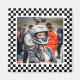 Motorsport theme with a black and white chequered frame. Upload your own photo to personalise.