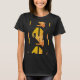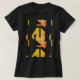 A design of geometric shapes and lines is featured in patterned hues of mottled orange-gold. Pictured here on a black t-shirt, with other styles and colours available. Inspired by the Native American/Southwest art style, as well as modern abstract and tribal art, the design projects a colourful, festive, artistic quality for a versatile and stylish addition to your casual and everyday wear (whether at home, socialising with friends, playing sports, or running about town). The shirt design as "wearable art" also expresses a sense of your individualised style, contributing to a feeling of being "together" and creative in your personal wardrobe choices.