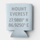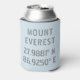 Latitude and longitude for Mount Everest, Nepal in grey, modern stencil font on light blue grey background