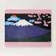 520 piece puzzle of beautiful Mount Fuji painting on a pink background to accentuate the cherry blossoms.