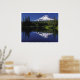 Photograph of snow-capped volcanic, Mount Hood in Mount Hood National Forest, and the peak's reflection in Mirror Lake below.
