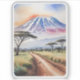 This sticker features a watercolor portrait of Mount Kilimanjaro in Tanzania.