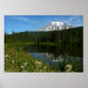 Mount Rainier Lake Reflection with Wildflowers Poster