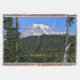 Snuggle up and stay cosy with this throw blanket with fringes that features a scenic, landscape photo image of snow capped Mount Rainier framed by Subalpine Fir trees as viewed from the Reflection Lakes in Mount Rainier National Park, Washington. Makes a beautiful display piece!