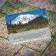 Travel postcard featuring a scenic photo image view of Mount Rainier National Park and stone steps engraved with a popular John Muir quote. Select from matte or glossy style card.