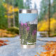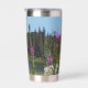 A trendy, stainless steel, thermal tumbler for your hot or cold drinks that features a wrap-around photo image of a picturesque landscape of pink Fireweed wildflowers and lake in Mount Rainier National Park, Washington. Makes a great travel souvenir!