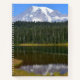 Standard size, spiral bound notebook with front and back cover featuring a scenic, landscape photo image of snow capped Mount Rainier being reflected on a calm lake surface. Perfect for keeping notes for the office or school. Select your notebook style and wire colour.