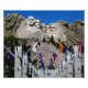 This beautiful photo shows Mount Rushmore National Memorial and the Avenue of flags. Granite sculpture carved into the mountain, this famous and popular patriotic monument shows four American past presidents, George Washington, Theodore Roosevelt, Thomas Jefferson, and Abraham Lincoln. The Avenue of Flags proudly displays the flags of the United States and US Territories.