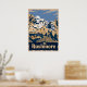 Celebrate your visit to Mount Rushmore with this vintage inspired print of the monument depicting Presidents George Washington, Thomas Jefferson, Teddy Roosevelt, and Abraham Lincoln.