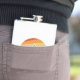 Well made flask, a little better than I had expected. Flask came in clear plastic box which gave it a nice presentation when I took it out of the zazzle packaging. Image is not printed on flask but on sticker. Don't know how this will hold up I haven't used it yet. This would make a Great gift! I plan to purchase more for friends! Cheers. I thought a little brighter than computer. Very crisp, writing wasn't