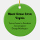 This round porcelain ornament features an image of Mount Vernon Estate in Virginia. This historic area was home to America’s first president, George Washington. He died here in his upstairs bedroom, and is laid to rest on this property. The location info is on the reverse in easy-to-read text over a green background.