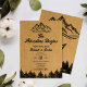 This wedding invitation card, embarking on a rustic woodland mountain adventure, is an excellent choice for a woodland-themed wedding. The design, inspired by nature, showcases the outline of a pine tree forest and mountains against a simulated kraft paper background. It's important to emphasize that this card is not printed on genuine kraft paper; instead, it's a top-notch graphic created to mimic the appearance of kraft paper.
