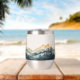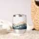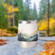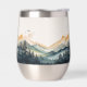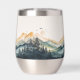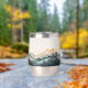 Enjoy your favorite beverage with this tumbler featuring a watercolor design of mountains and forests.