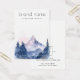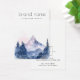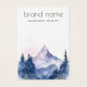 Earring jewellery product display card with your brand in a modern script font and a watercolor painting of blue mountains and trees. Customisable text and logo on the back.
