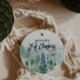 Celebrate your little ones first Christmas with this watercolor mountain and tree ornament.