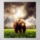 Grizzly Bear and mountain background. Done in Photoshop cc