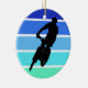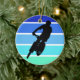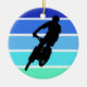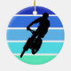 Mountain Biker on Retro Blue-Green Stripes Ceramic Tree Decoration