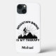This iPhone cover is perfect for a mountain biking enthusiast. The cover can be personalised by adding your own name or if you prefer, removing the name option altogether by leaving the personalisation box empty and only keeping the design. This design is all black on a white background.