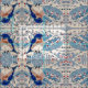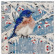 A Bluebird sits happily in a among st holly berries during a snowstorm. The fabric image was created from an original painting by International Artist Jennifer Lake.