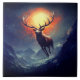 Simple grey mountains with ball of fire representing the disaster this giant buck is running from.