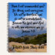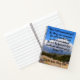 This customisable Christian notebook shows a dirt road looking down on the valley below and clouds over the distant mountains under the customisable words of the Bible verse of Joshua 1:9: "Have I not commanded you? Be strong and courageous. Do not be terrified and do not be overwhelmed. Because the Lord your God is with you wherever you go." This would be a great Christian gift for a confirmation or baptism since it's easy to add you godchild's name to personalise it how you want.