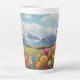 This exquisite mug showcases a breathtaking scene featuring vibrant mountain meadow flowers set against the majestic backdrop of towering mountain peaks. The vivid colours of the meadow flowers, including hues of purple, pink, yellow, and white, pop against the serene blue sky and snow-capped peaks. The detailed depiction of the mountain meadow flowers adds a touch of romance and serenity to the mug's overall aesthetic.
