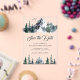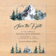 Elegant forest theme wedding Save the Date card featuring beautiful mountains and pine trees.