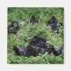 Souvenir photo magnet of a group of wild mountain gorillas with silverback and babies chilling in the green jungle of the Volcanoes national parc in Rwanda at the border with Congo and Uganda.