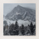 Mountain jigsaw puzzle of a mountain covered in snow and surrounded by pine trees.