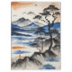 Inspired by Japanese ink and watercolor art, this clipboard has a landscape of ancient, weathered trees, a mountain lake at sunrise with birds flying overhead. Beautiful and tranquil scene.