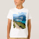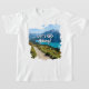 This design features a stunning lake in rugged mountains with the phrase "Let's Go Hiking!"