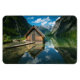 Magnet shown with a photo print of a beautiful lake and mountains scene with a rustic wooden cabin boat. 4x6 size. Stock Image