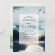 elegant serif typography, and the mountain forest landscape is continued on the back of the invitation. Soft ethereal blues and greens
