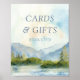 Mountain wedding sign with scenic watercolor design in shades of dusty blue and green. The lakeside scene features mountains, greenery and pine trees, the lake and a light sky. All of the text is editable, including the "Cards & Gifts" title and you can of course change the names. If you would like matching products, please browse my Mountain Lake collection