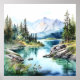 Mountain Lake Watercolor Painting Art Print.