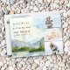 Mountain Lake Watercolor wedding save the date with three of your own photos and idyllic scenic landscape. This scenic watercolor design is perfect for a country or lakeside destination wedding shades of dusty blue and green. The peaceful scene features mountains, greenery and pine trees, the lake and a light sky. If you would like matching products, please browse my Mountain Lake collection