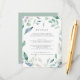 Designed to coordinate with our Mountain Meadow wedding collection, this elegant spring botanical guest information card features a border of green watercolor foliage and violet purple flowers encircling your key wedding details, like hotel accommodations, welcome reception information, website and more. Add your custom text using the fields provided and use the Customise function to adjust fonts, sizes and spacing.
