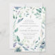 Our Mountain Meadow wedding invitation surrounds your wedding day details with ethereal watercolor foliage in light spring colours including sage green and violet purple, accented with wildflowers and buds.
