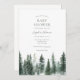 Baby Shower invitation featuring border of watercolor pine trees. Customise with your information for mum to be. Click "click to customise further" to change the font style, size or colour.