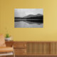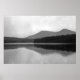 A peaceful and serene setting...the mirror image of mountains and trees reflected in a pond in the White Mountains of New Hampshire forms an abstract pattern of black, white and grey. This is a simple and elegant fine art photography travel poster.