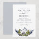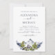 Mountain Rustic Outdoor Berries and Greenery Watercolor Spring Wedding Dusty Blue and Green Elegant and Modern Invitations on White background - includes beautiful and elegant script typography with modern botanical leaves and greenery for the special Wedding day celebration.