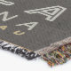 A quality printed throw has its advantages. This is a much finer weave throw than its loopier cousins, and though lighter, it is worth the investment for custom room accessorizing. The back is much prettier than the typical brown, and the fringe on the long sides very vivid, the selvage nicely done. Before photographing, I washed the throw in cold water, delicate, with a thicker woven throw the same size. On tumble dry low, this throw was dry in half the time as the other. This is a very practical quality if you use throws for furniture covers or to wrap up in frequently. The sleekness of the fabric makes it a great layer for accenting or protecting without the feeling of sitting on too much stuff. Perfect for napping or when you feel a light chill coming on. The color printing is beautiful and on this fabric, matched the design and color of my Photoshop image. This is an advantage for blending room fabrics and colors. The fringe on the short sides prints the colors from the design image and therefore varies from the side fringe. I streaked a white fractal line through the plaid pattern to give the illusion of weaving. This printed as crisp as an illusory thread, and put some white in the short side fringe, showing another advantage of print vs loomed- for artistic purposes, line lines, detail, and color integrity can be planned and preserved. My loomed throws have color limitations and more of a needlepoint texture. Print throws reproduce an exact image. The throw felt a little stiff straight out of the package, but this went away in the first delicate wash. Of course I searched the wash water for ink or bleeding and there was none.