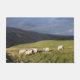 A photographic design of Welsh mountain sheep grazing on the sunny hillside just as the rain is about to start.