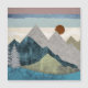 Modern landscape with unique colours and patterns showing a mountain landscape with a striped skyline.