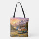 Mountain Sunset Wildflowers Retro Hippie Van Life Tote Bag