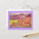 mountain town watercolour sketch postcard