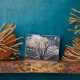 A dark dramatic abstract Welsh mountain tree design depicting mountains and harsh weather.